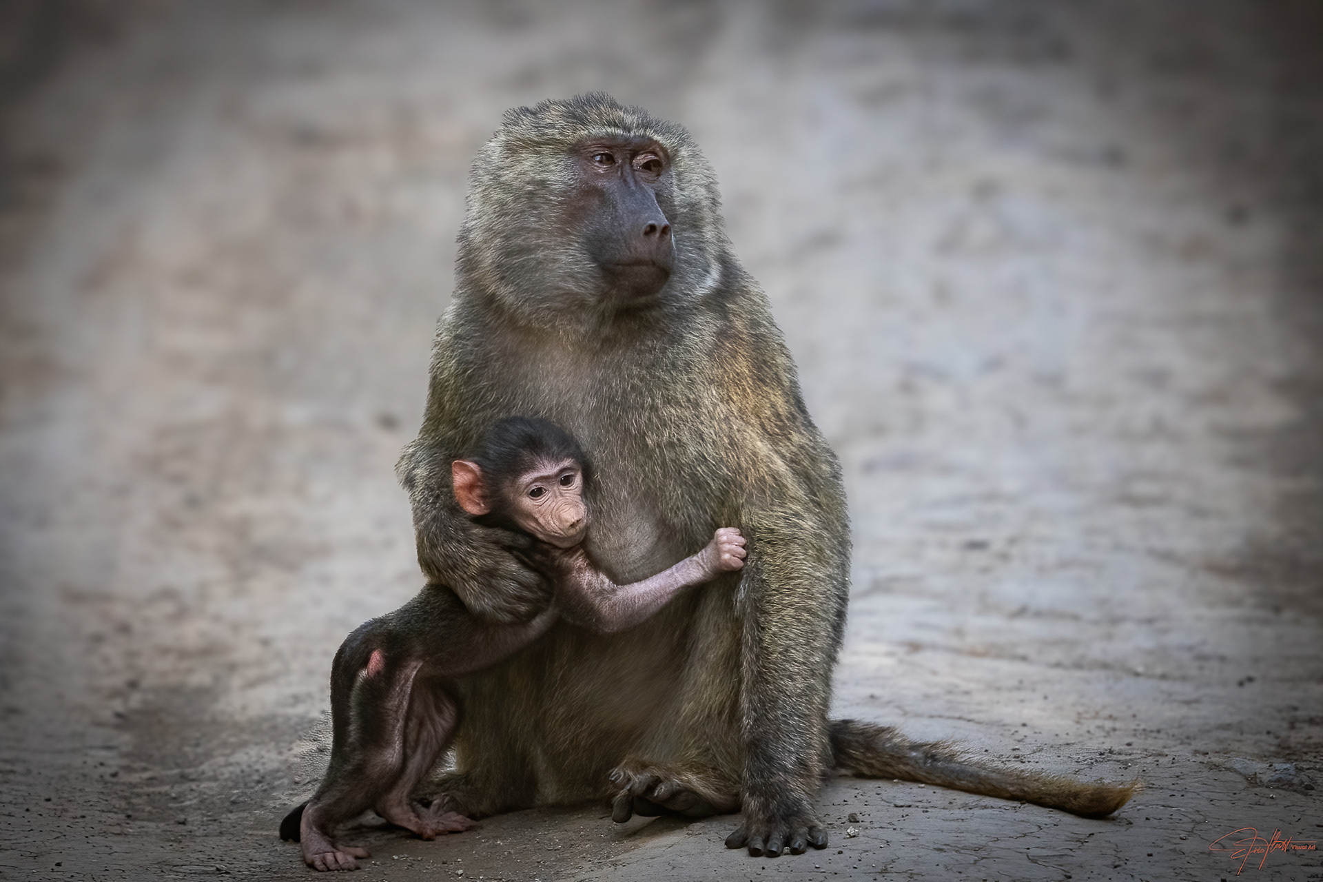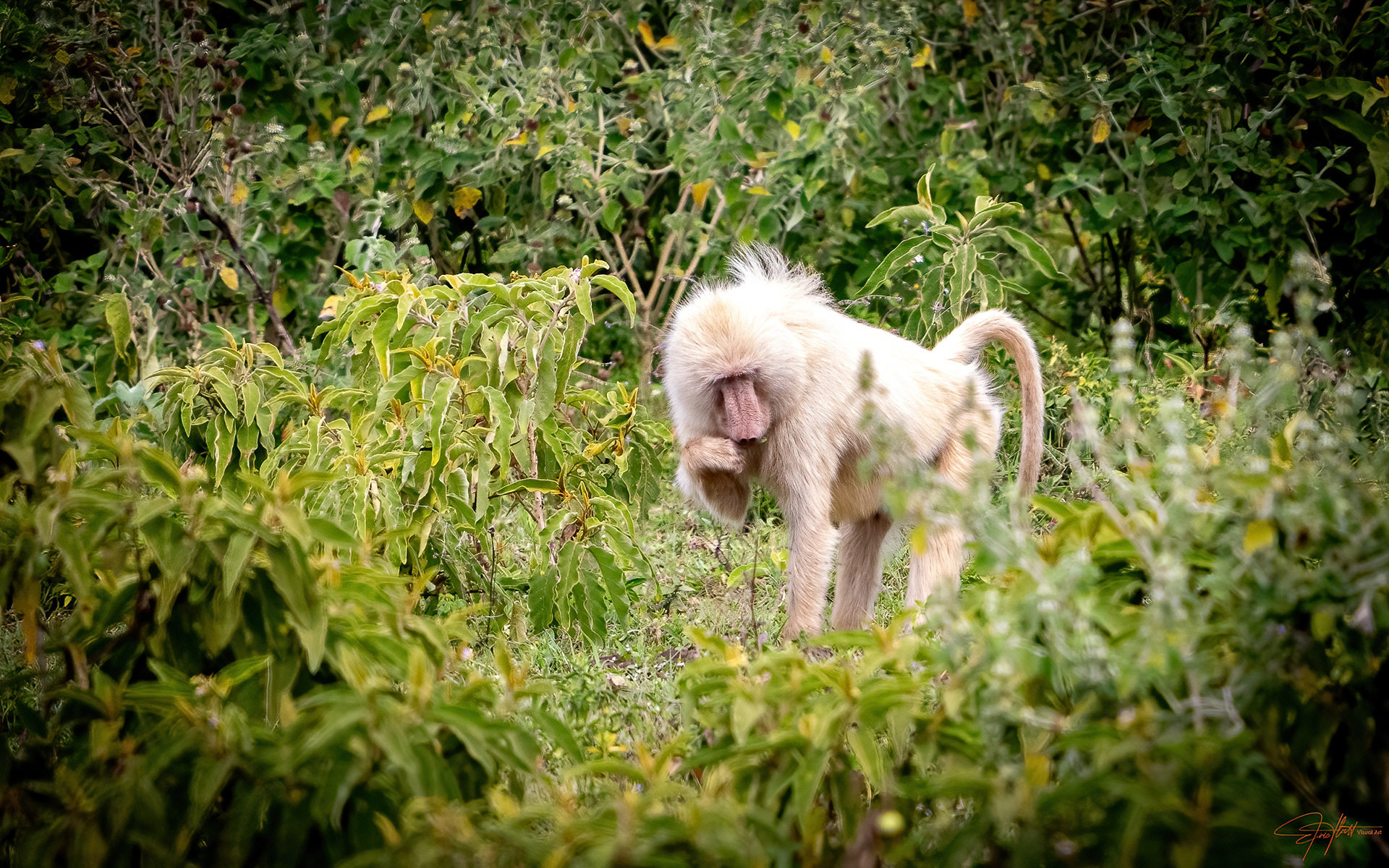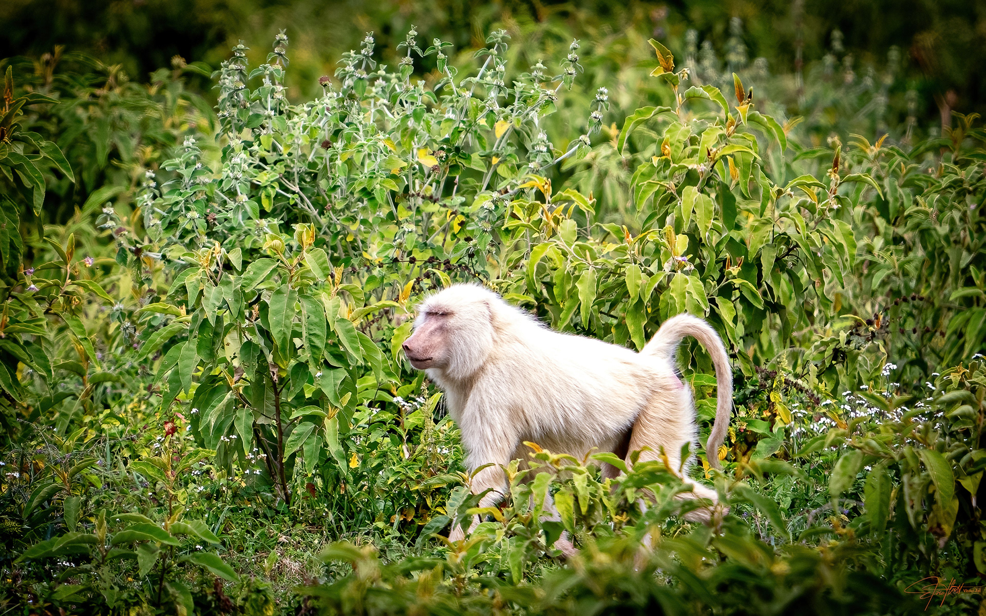 Very rare albino or white Baboon.